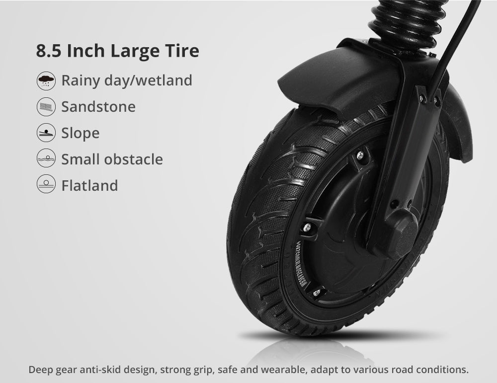 - Wheel Size: 8.5 inches Solid Rear Anti-Skid Tire