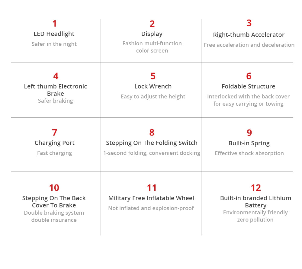 - Max. Mileage: 30km (Depends on Road and Driver Weight)