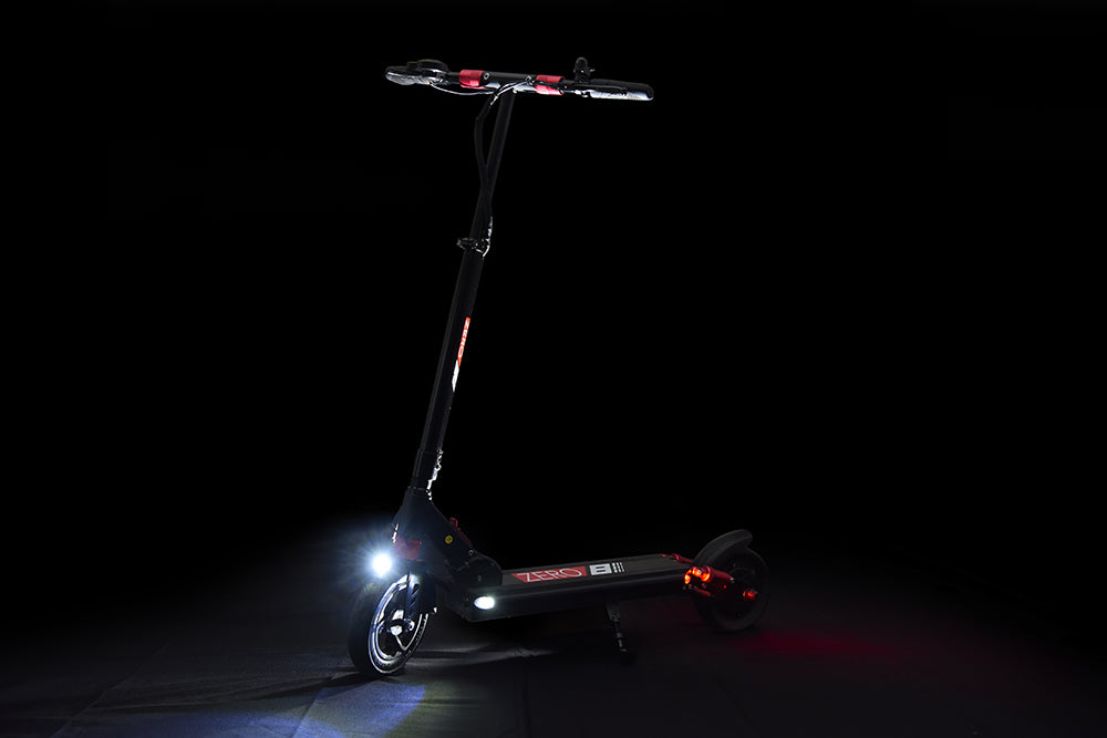 The ZERO 8 has 4 in-built front and rear LED lights that adequately light up your path in low-light situations.